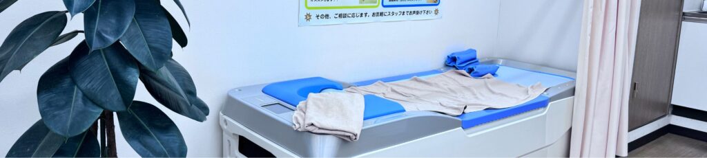 水に浮かんだような感覚で、全身をやさしくマッサージする治療ベッドです。